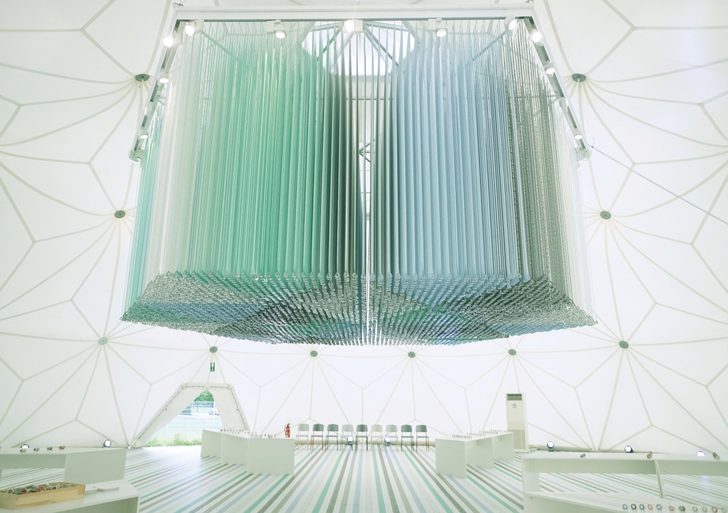 La parte interna della mediateca tapezzata di mt masking tape.
